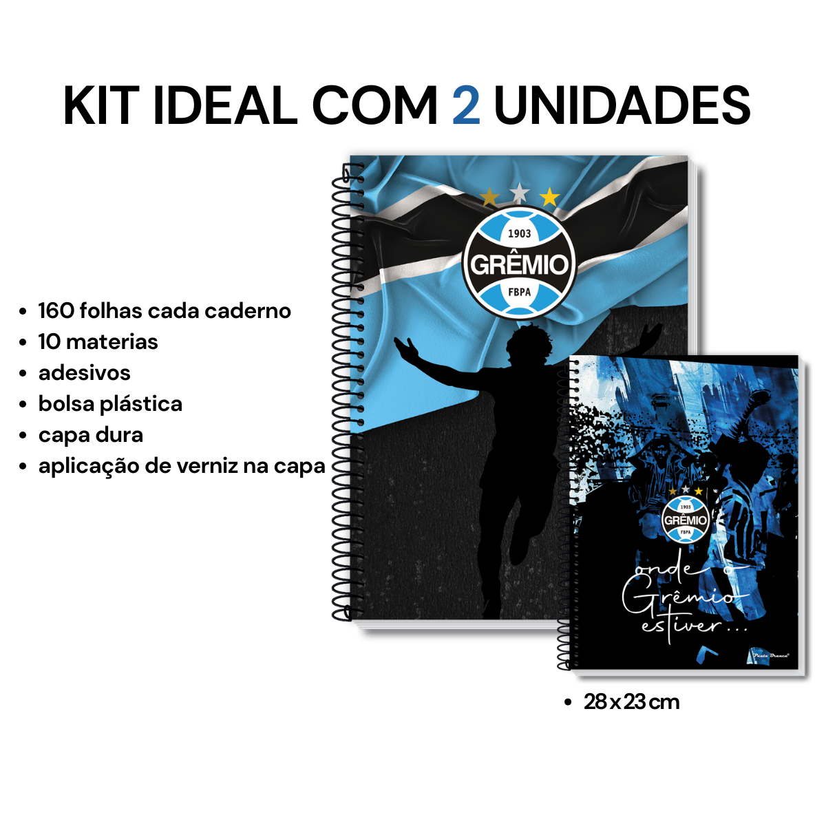 Kit 2 Cadernos GRÊMIO Capa Dura 10 Materias 160 Folhas