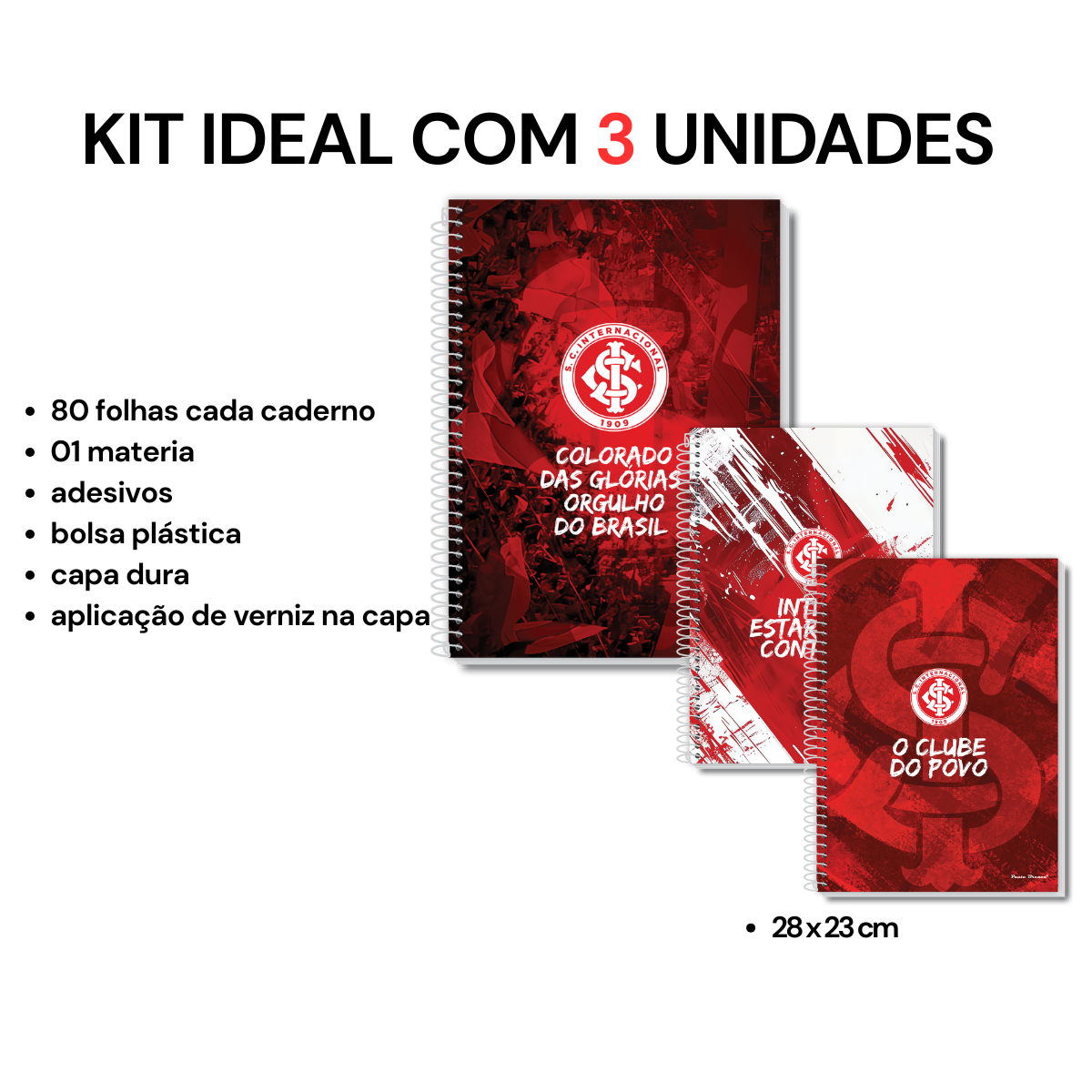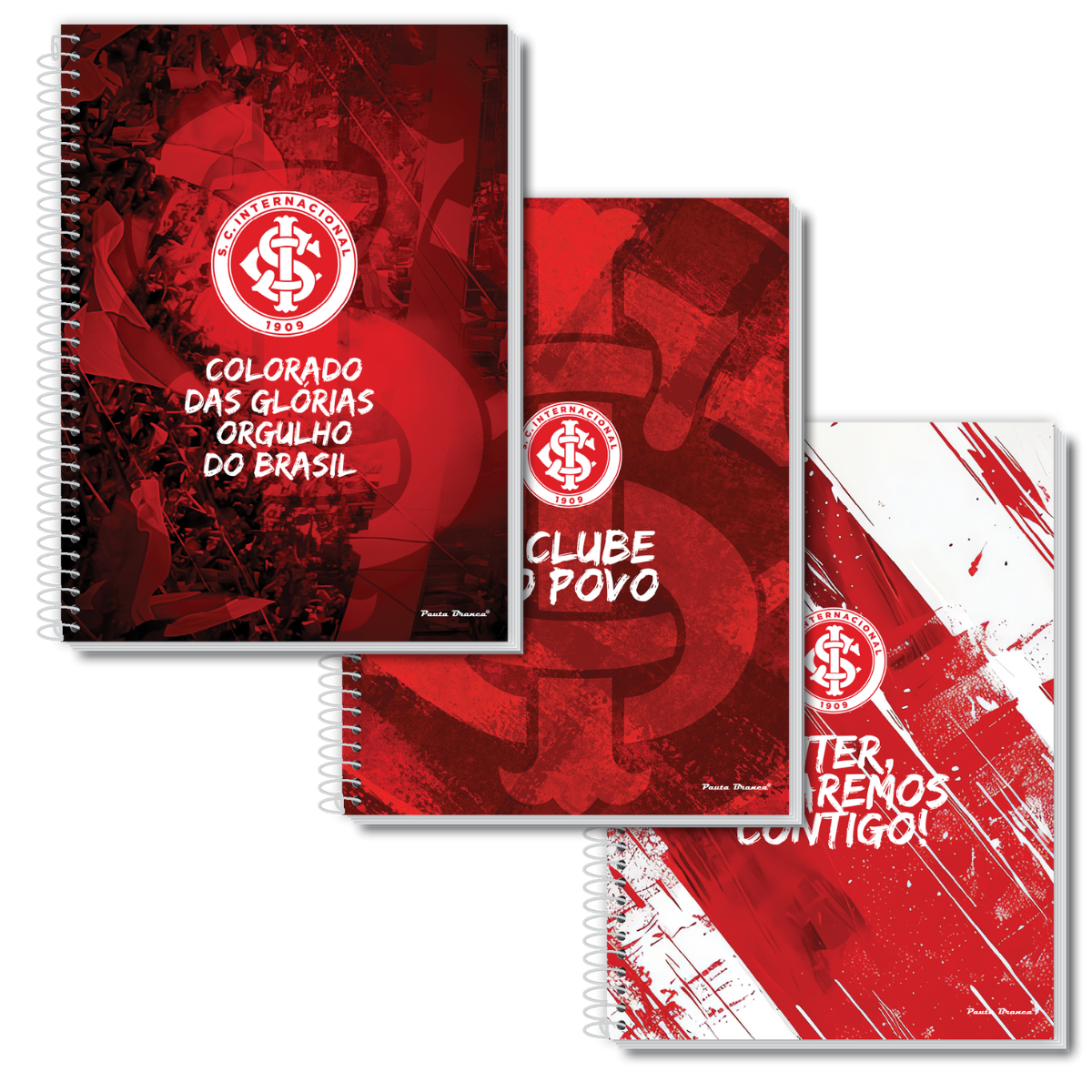 Kit com 3 Cadernos Universitários Capa Dura Espiral Temas oficiais do Sport Club Internacional!